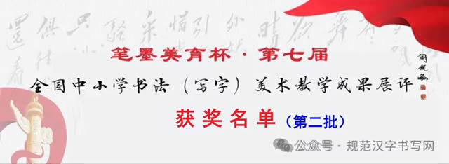 由炎黄书画家协会、中国硬笔书法馆为艺术指导单位,由中国规范汉字书写网、《规范汉字书写报》编辑部主办,由辽宁阜新汇丰文化传媒有限公司、内蒙古硬笔书法家协会、全国师范院校书法教研中心组协办的笔墨美育杯第七届全国中小学书法(写字)美术教学成果展评(第二批)暨龙腾盛世杯第五届全国中小学师生规范汉字书写大赛(第二批)评审工作于2025年3月18日在线上举行。